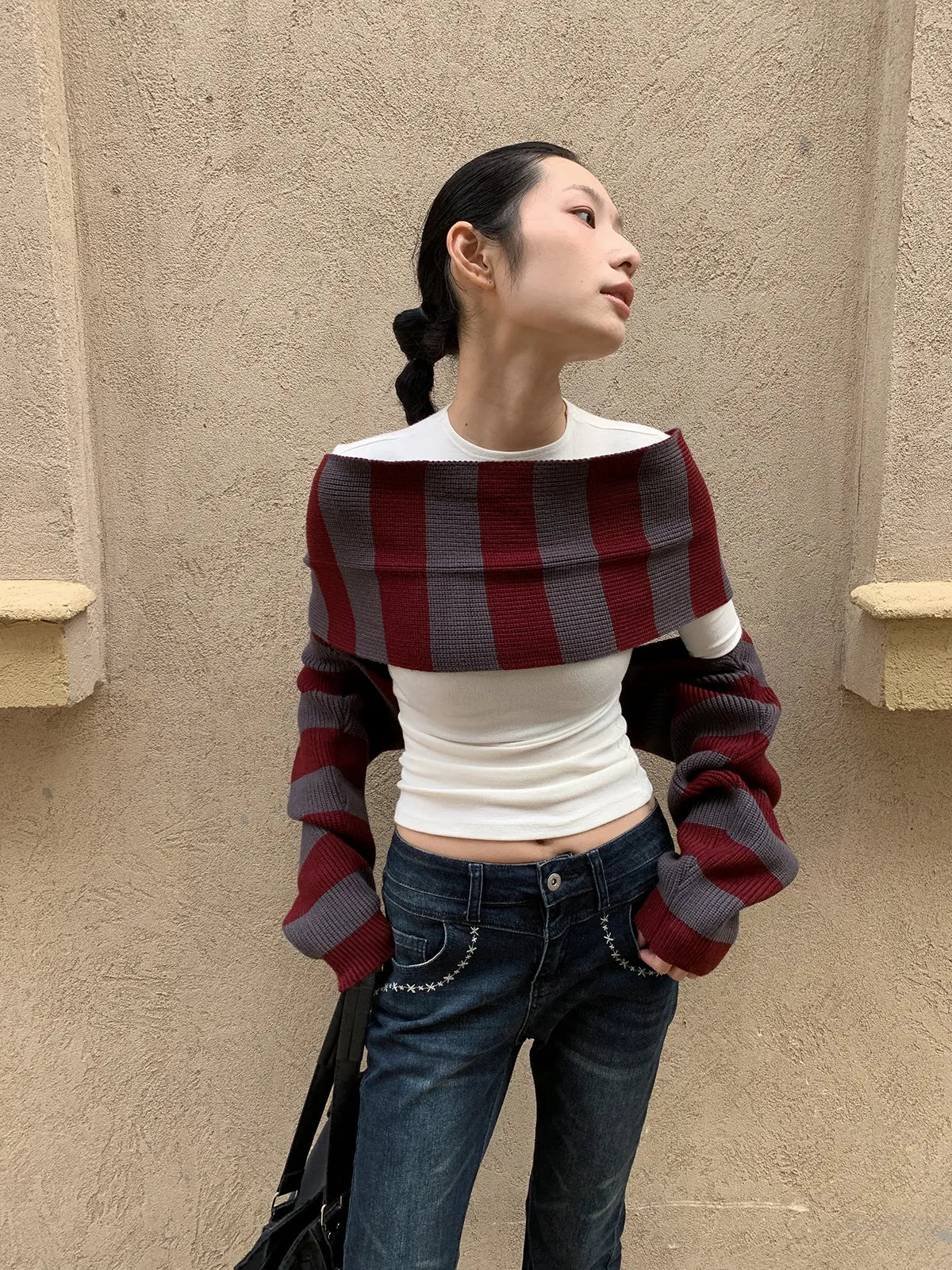 • —Half-high collar