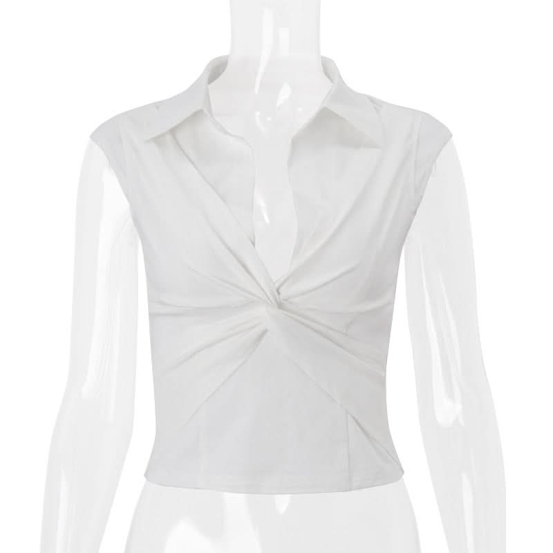 Turnover collar ruched cap sleeve top