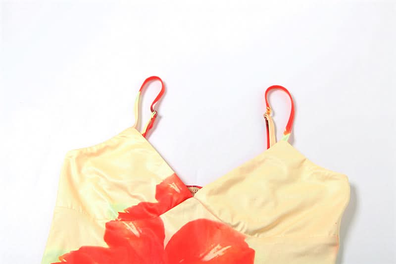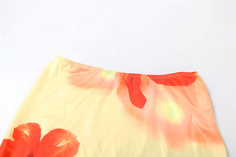 V neck flower print cami maxi skirt set