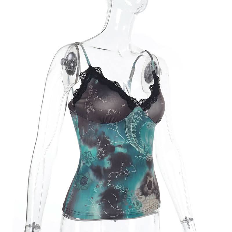 V neck lace hem contrast cami top