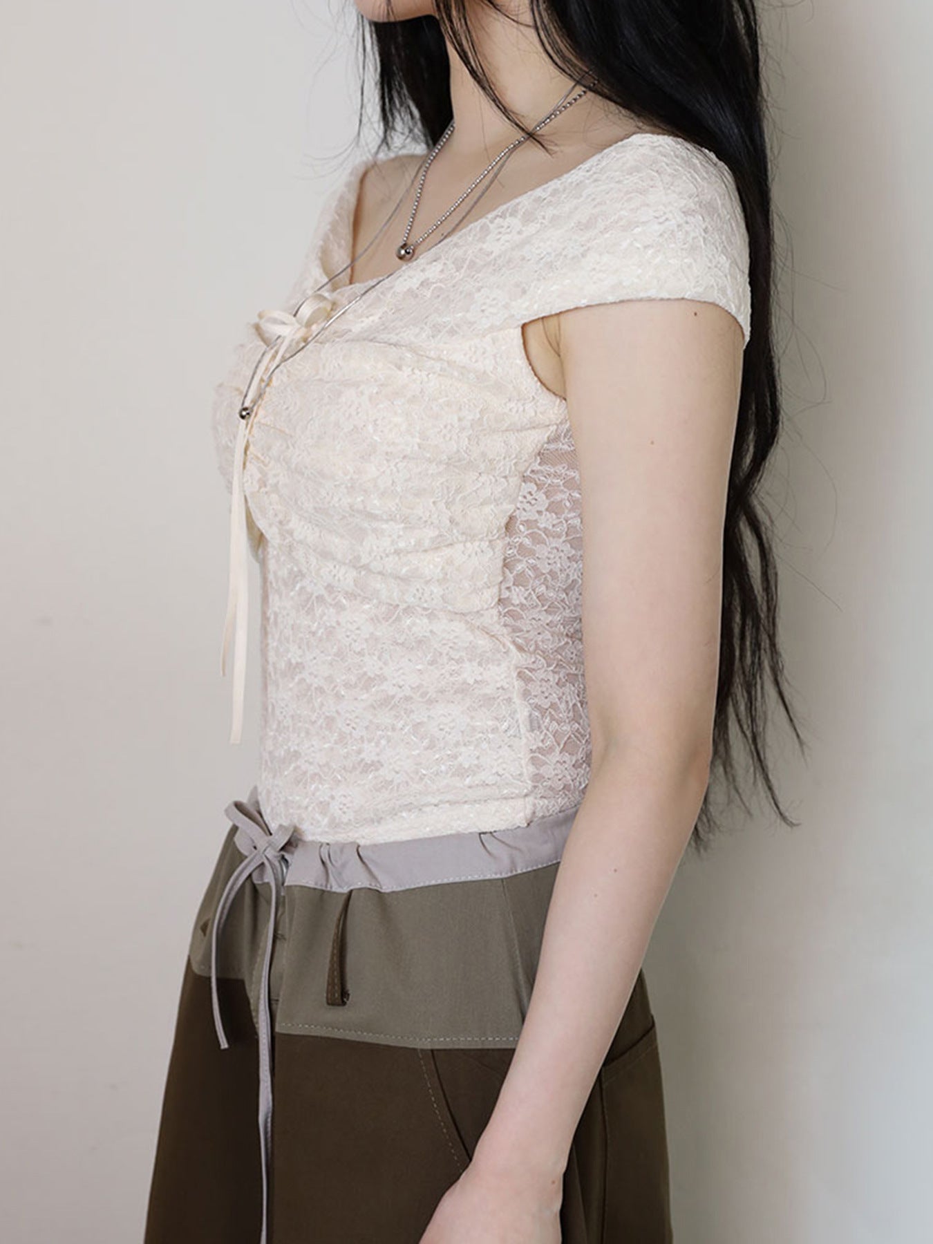 Fabric: lace + milk silk composition: 95%POLYESTER 5%ELASTANE weight: 0.1KG