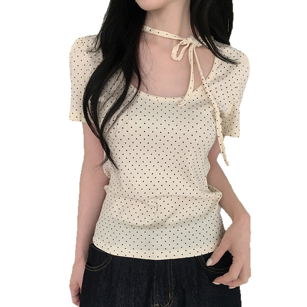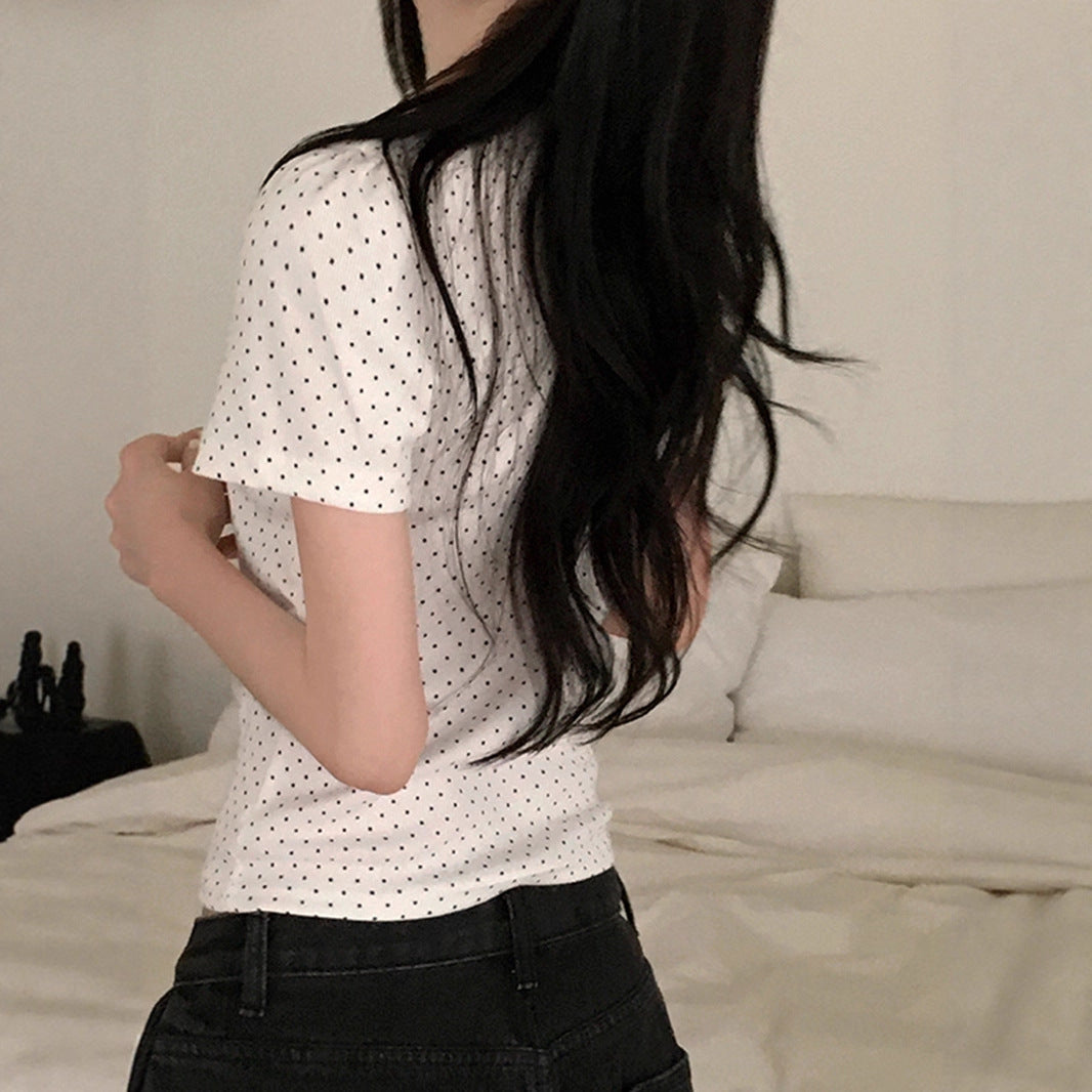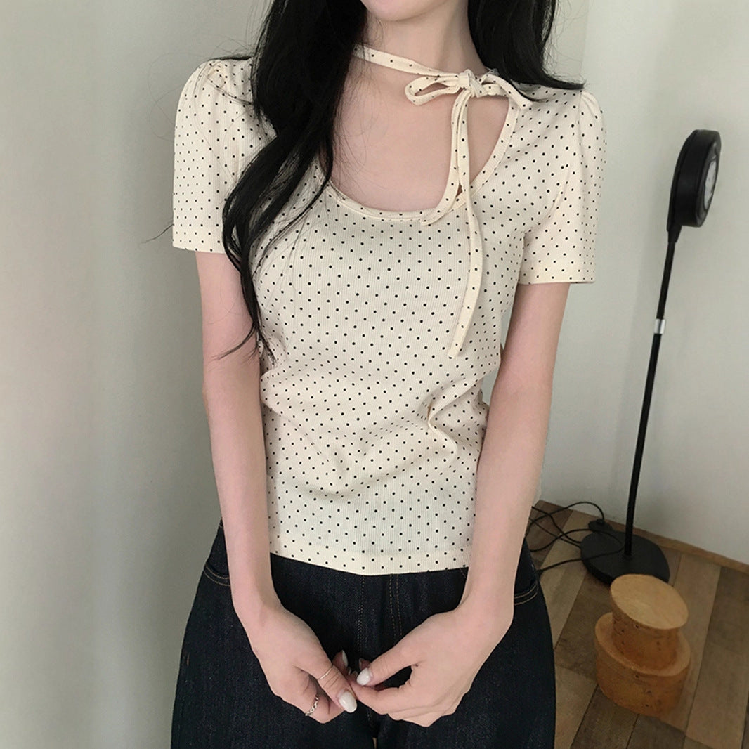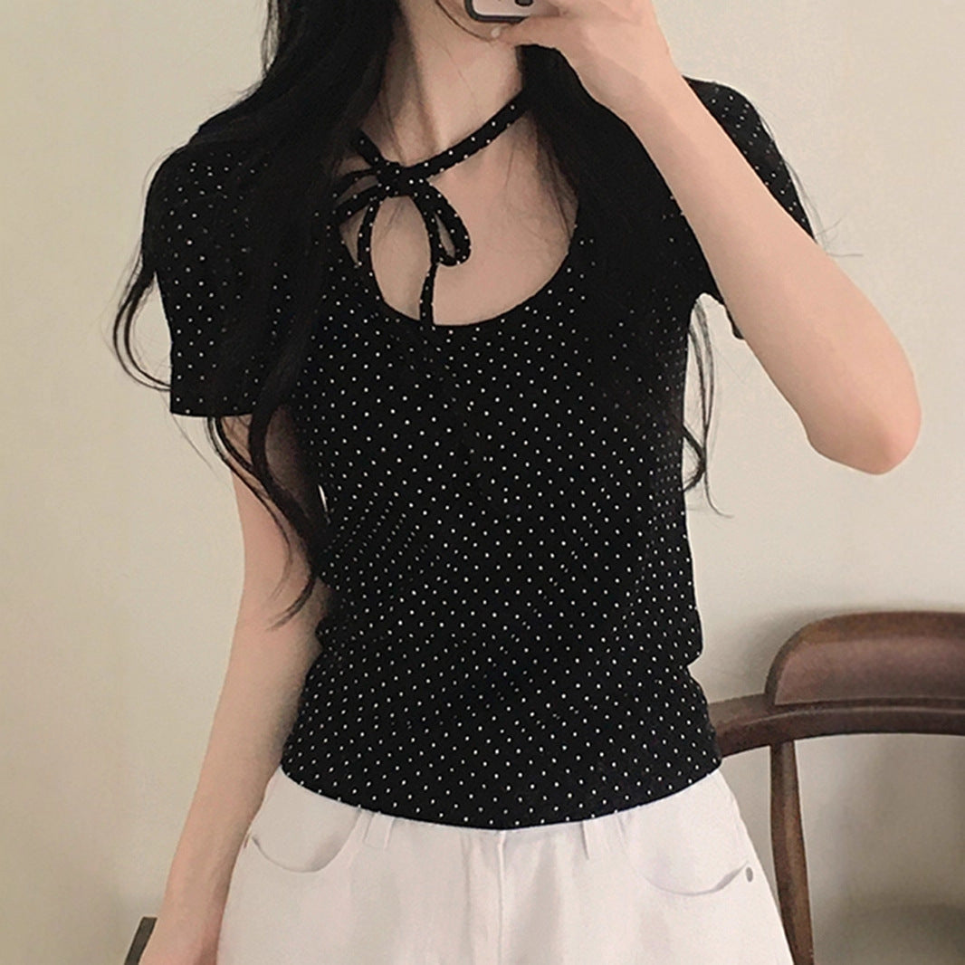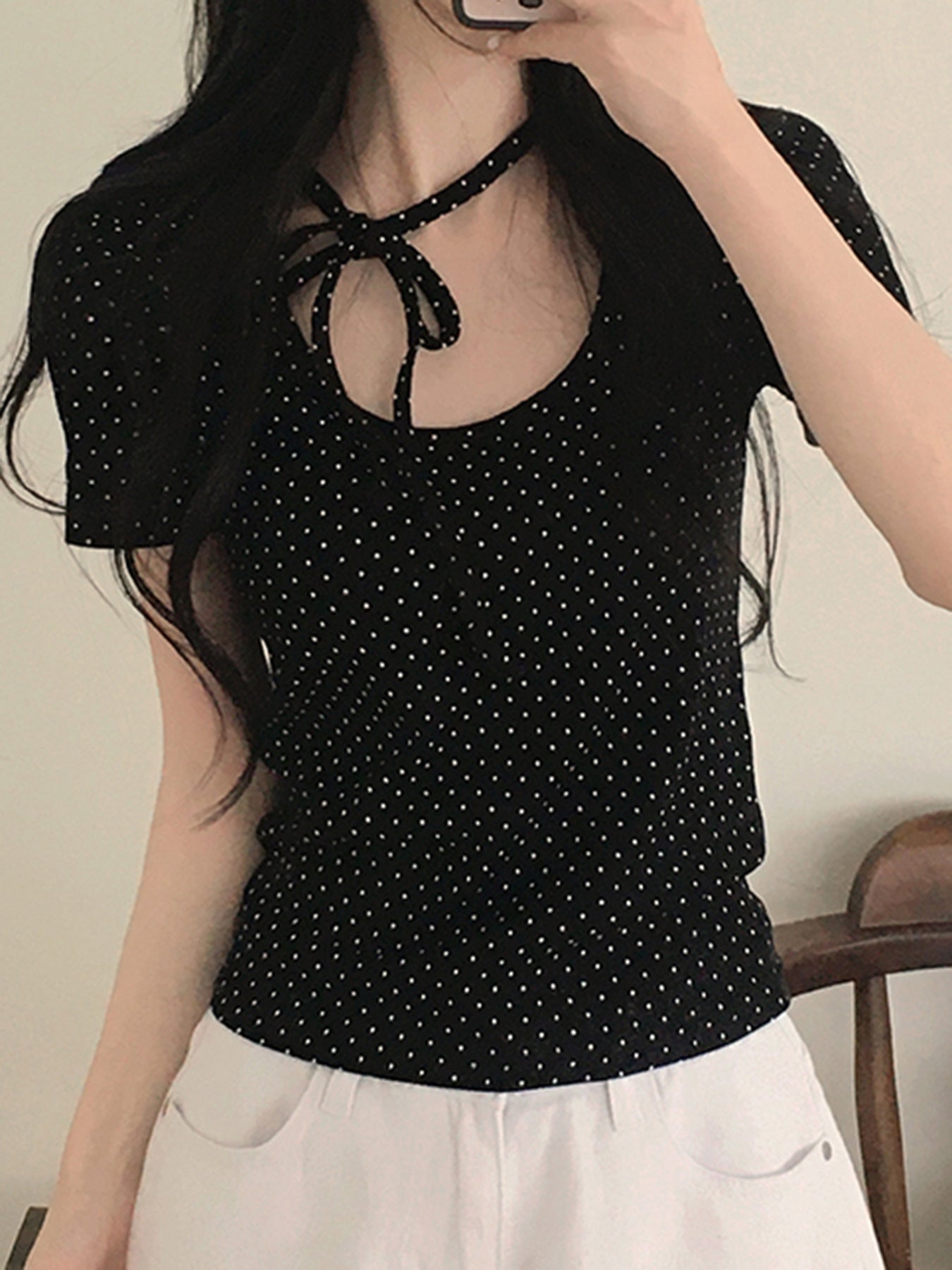polka dot U-neck