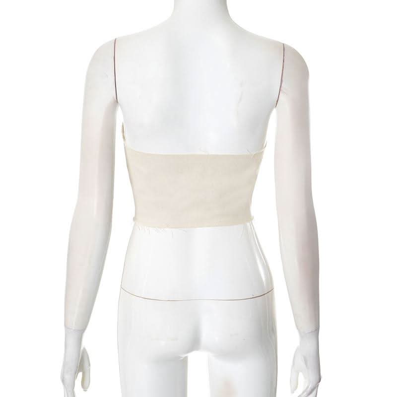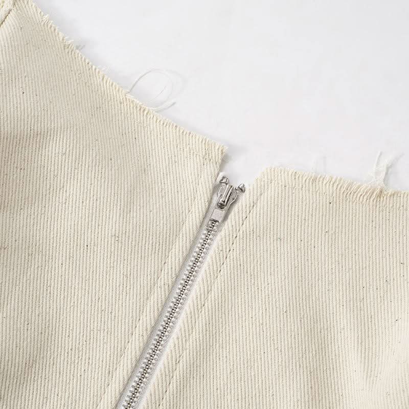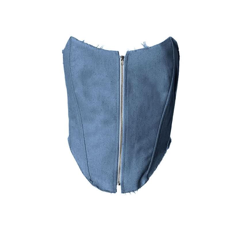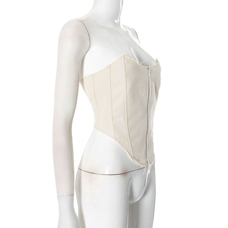Zip-up backless corset raw hem tube top