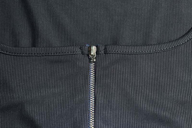 Zip-up self tie ribbed square neck solid pant set